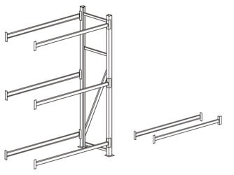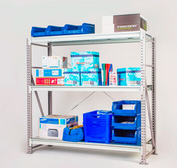 Собрать стеллаж необходимой длины позволяют Доборные комплекты. Они пристраиваются к боковой раме стеллажа, образуя дополнительные секции. Предлагается три Доборных комплекта с длиной балок 900, 1500 или 1800 мм. Каждый Доборный комплект имеет три уровня хранения (полки), включает раму и шесть балок. Есть возможность пристроить дополнительную секцию к уже установленному стеллажу.